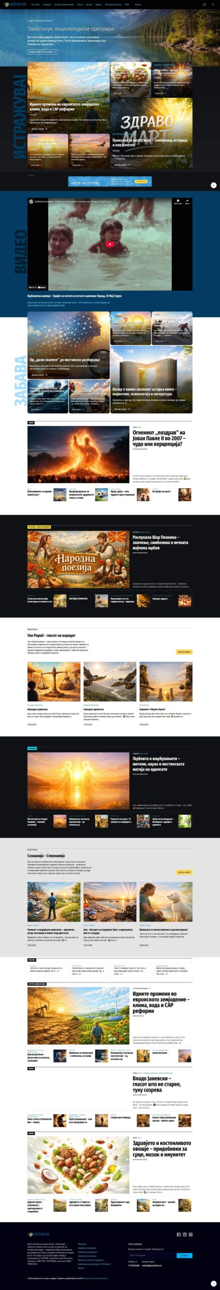 Веб платформа Panoptikum.mk – авторски дигитален простор за есеи, анализи и размислувања за општеството, психологијата на секојдневието, јазикот, идеите и културата. Едукација, забава, информација. Препознатлив радио бренд во веб формат, со јасна уредувачка насока и препознатлив стил.